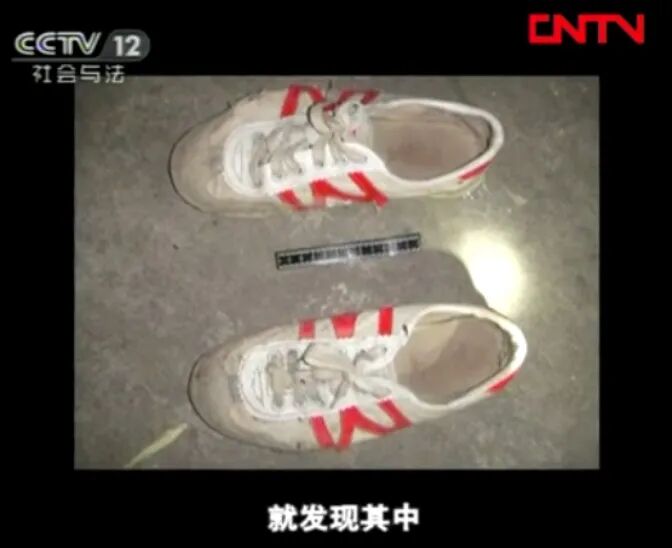 嫌疑人的亲友证实,这双带有血迹的鞋属于刘芳合未成年的儿子孟少英(化名)的。