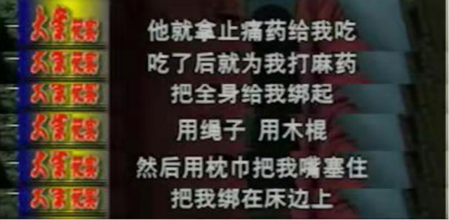 只见他把蓉蓉扔到床上后,捡起地上早已准备好的绳子,把她的双手牢牢捆在床头、双腿用木棍分开,又将毛巾塞到她口中,紧接着为她注射了麻醉药。