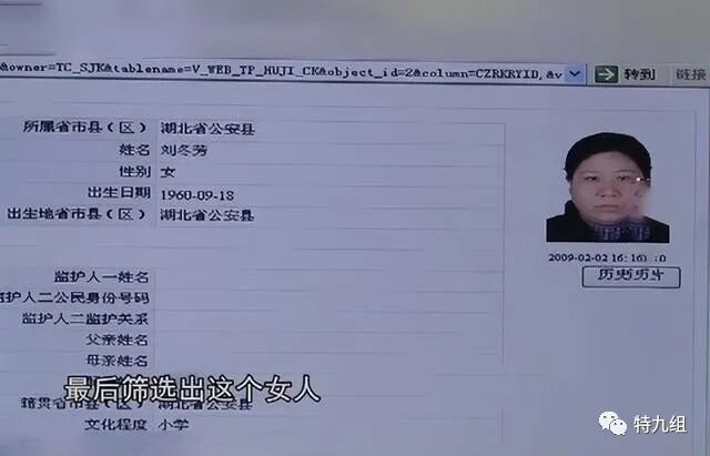 根据刘冬芳的名字,侦查员从公安县的人口数据库中筛选出了一个五十出头的妇女,经过照片比对,发现她的样貌和当年的刘冬梅很像。