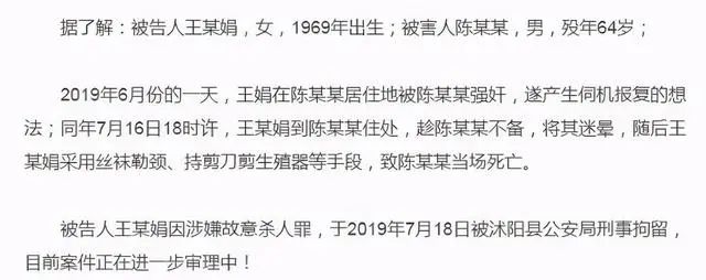 近日,江苏省宿迁市人民检察院公布了一起骇人听闻的案件信息:51岁的女子王某因遭强奸后报复,剪掉64岁陈某生殖器致其死亡。