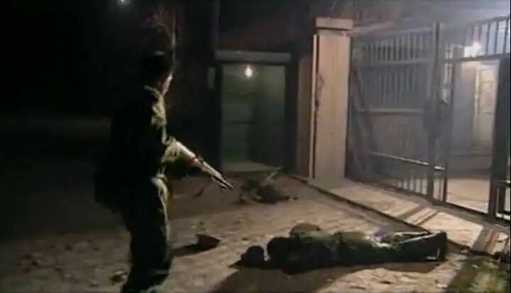 白宝山先瞄准背枪的哨兵开了一枪,那个哨兵应声倒地,不动了。他一转枪口又朝背子弹袋的兵打了一枪,那个兵也不动了。他正要朝第三个兵射击,发现那个兵已匍匐着进了大门,他瞄着那人连开三枪,均没打中。