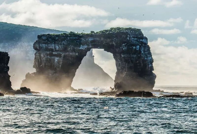 “达尔文拱门”以英国著名生物学家查尔斯·达尔文(Charles Darwin)命名,位于加拉帕戈斯群岛最北端,是矗立在海底礁石之上的拱门状天然岩层。
