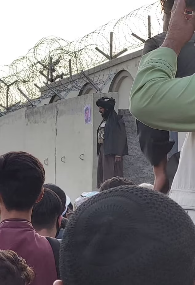 法蒂玛偷拍的喀布尔机场入口处的情景。