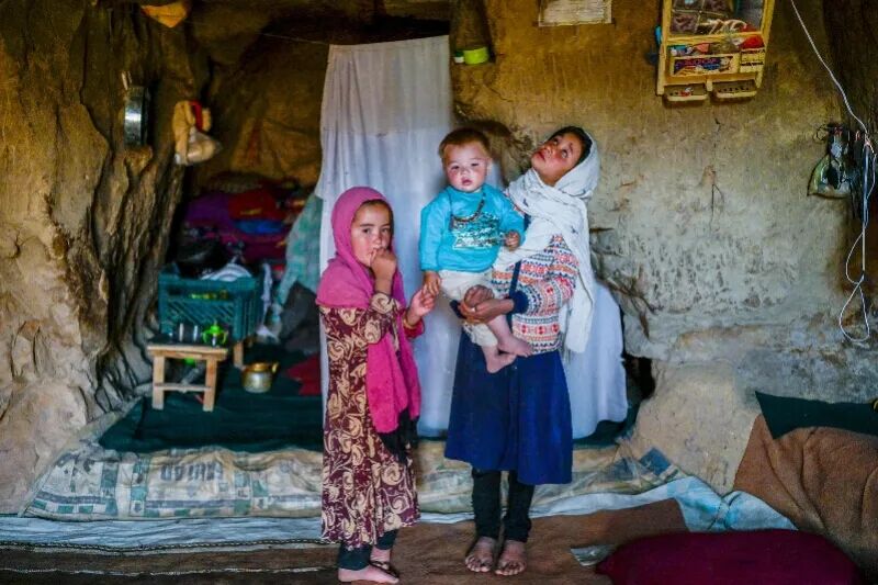 10月3日,孩子们站在阿富汗巴米扬的洞穴居所里。新华社/法新
