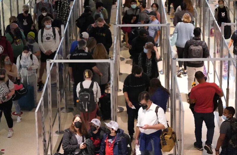 随着奥密克戎变异毒株的疫情扩散,美国航空业遭遇了大规模的航班延误和取消。