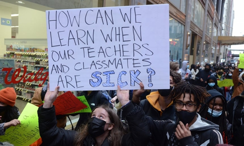 据南都此前报道,近日美国加利福尼亚州、新泽西州、华盛顿特区、纽约市、芝加哥市等多个地区爆发了学生抗议活动,要求学校实行更严格的防疫措施。一位居住在洛杉矶的学生家长冯女士在接受南都记者采访时表示,洛杉矶的学校目前已经恢复线下授课,“作为家长还是觉得美国复学太早了,小孩子对防疫距离的把握可能不是那么准确、严格,所以我们还是担心学校的疫情会暴发。”据统计,目前洛杉矶联合学区在截至1月14日仍有13万学生缺勤,出勤率仅为66.8%。