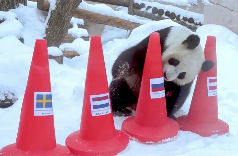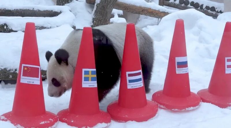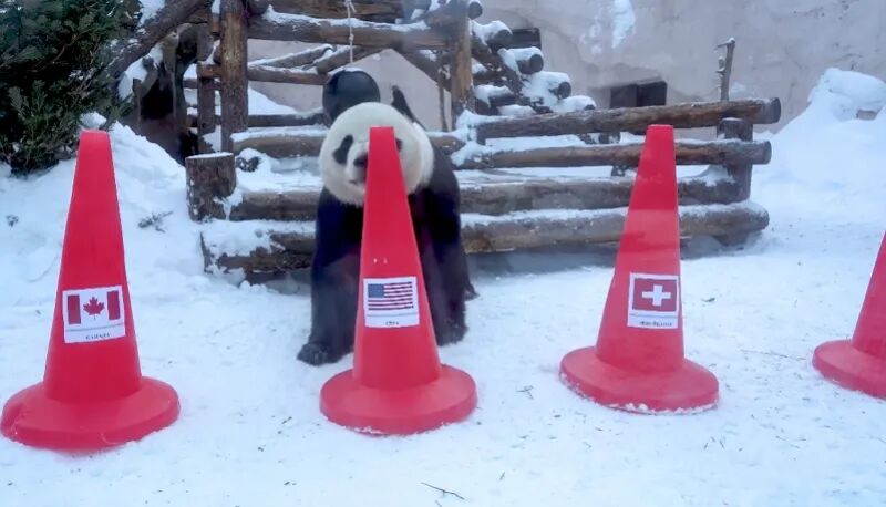 俄罗斯莫斯科动物园日前请“镇园之宝”大熊猫预测北京冬奥会优胜者。