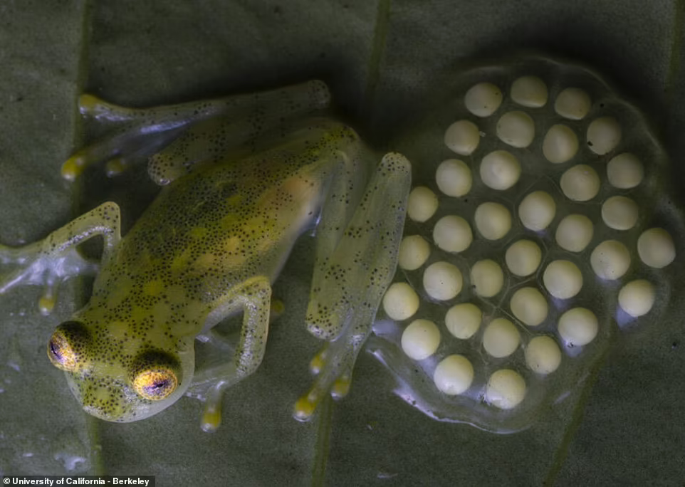 马什皮玻璃蛙和蛙卵。