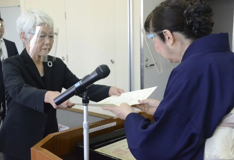 名仓获得爱知县立大学校长颁发的博士学位证书