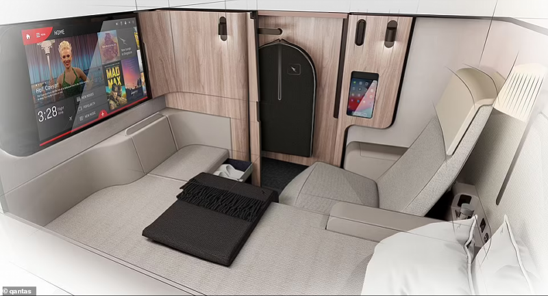 “正如你所料,机舱是专为长途飞行提供最大舒适度而设计的,”乔伊斯说,头等舱套房将包括一个带门的私人区域,里面配备一台全尺寸平板电视、一张单独的床、可调式座椅和衣柜等家具。