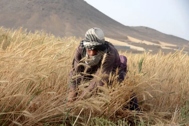 5月9日,农民在阿富汗坎大哈省一片麦田里收获小麦。新华社