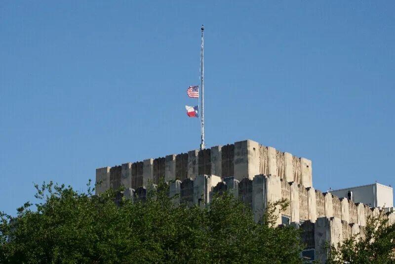 5月24日,位于美国得克萨斯州首府奥斯汀的一栋政府大楼降半旗,向枪击事件遇害者致哀。新华社