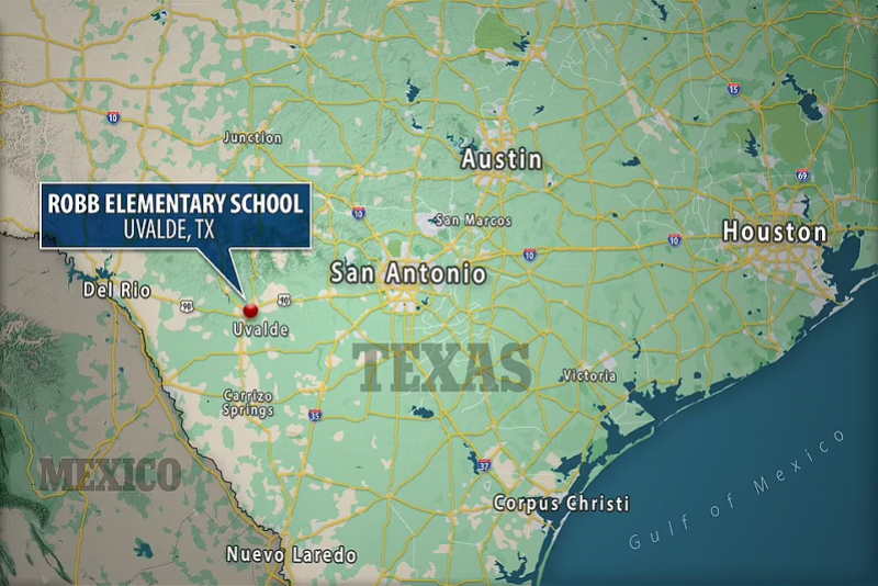 尤瓦尔迪市人口约1.6万,距离墨西哥边境约75英里(120公里)。罗布小学位于一个以普通阶层为主的住宅区。
