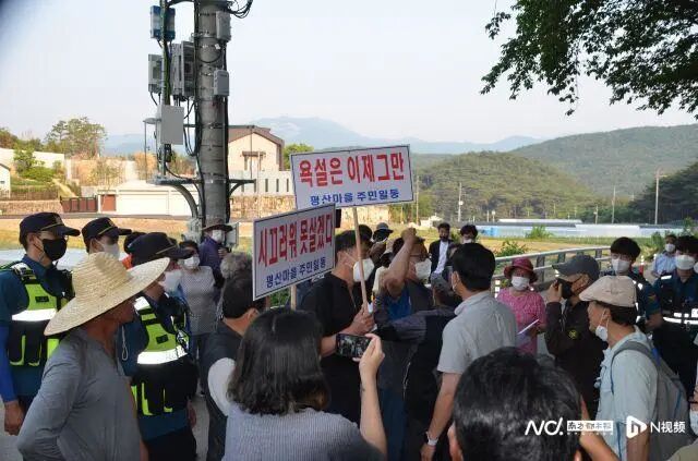 5月24日,村民因噪音与示威者发生冲突。(韩国《国民日报》)
