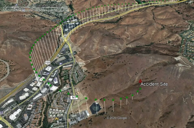 涉事直升机最后一分钟的飞行轨迹。图据NTSB调查报告