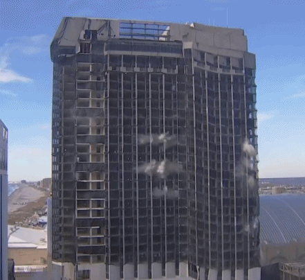 当日上午9点过后不久,放置了3000管炸药的引爆按钮被按下,命名为“特朗普广场”(Trump Plaza)的酒店和赌场在短短几秒钟内就变成了一堆瓦砾。