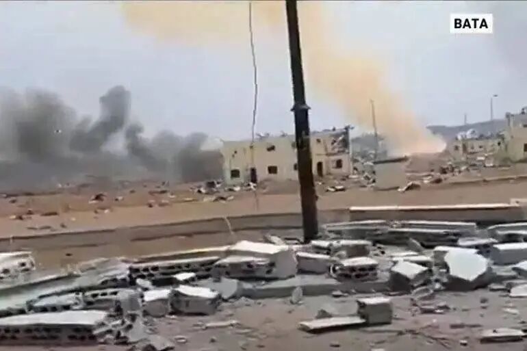 巴塔市恩科安托马军营军火库爆炸现场。