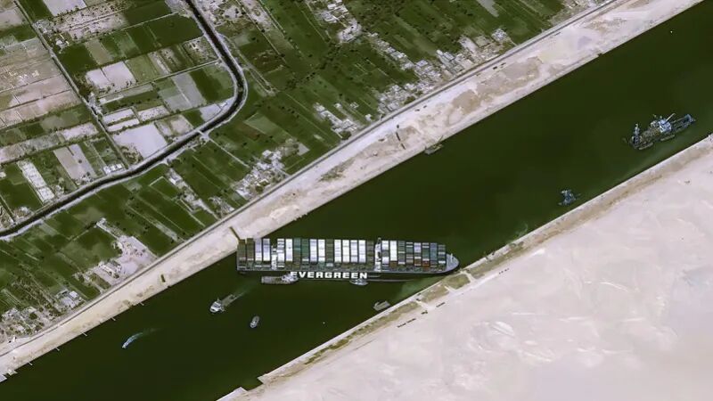 中国台湾长荣海运旗下超大型集装箱船“Ever Given”号自当地时间3月23日搁浅在苏伊士运河。