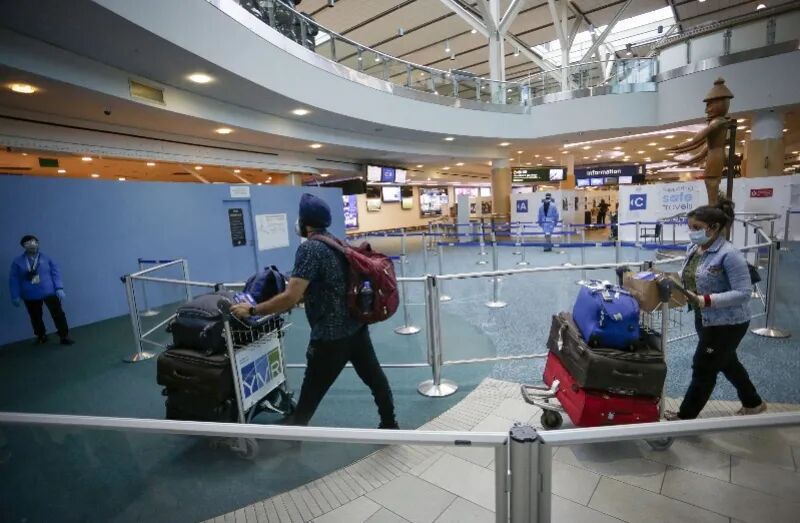 4月23日,来自印度的旅客抵达加拿大温哥华国际机场。