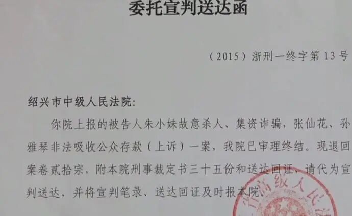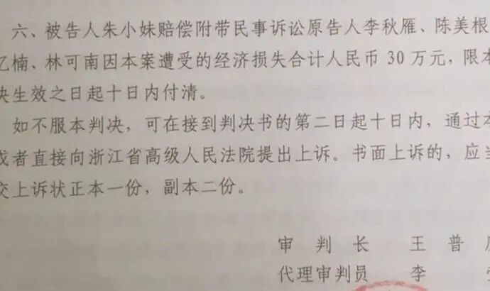 2015年3月30日,浙江省高级人民法院做出二审判决,驳回朱小妹的上诉,维持一审判决。