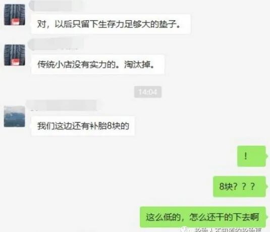 轮胎店或者汽修厂的轮胎业务喊涨价其实已经不少年,但是一直没有涨价成功,一些地方甚至出现“涨价又降价”的现象,导致“联盟统一提上来的价格”很快被打下来,背后的原因就在这里:“小规模的轮胎补胎只收5块,你嫌赚的少不做,有人做”。