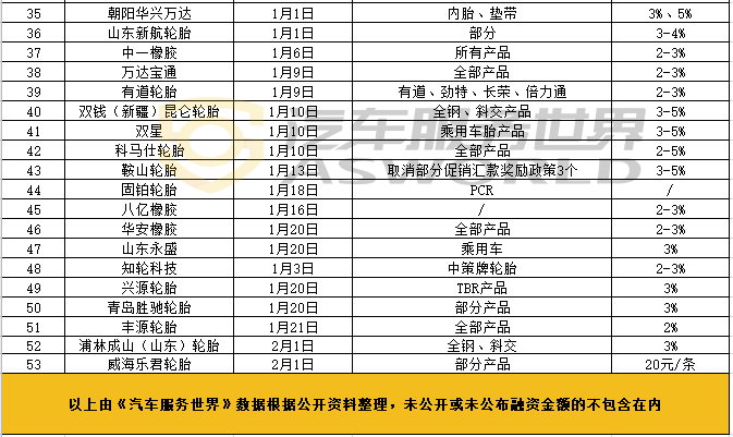 据《汽车服务世界》不完全统计,自1月份以来,已经53家轮胎企业宣布涨价,普利司通、固特异、韩泰、中策、玲珑、正新等轮胎品牌均包含其中,其中不少轮胎企业都涨了二到三,单次涨价幅度在2-6个点不等,中策朝阳更是从去年10月份开始每月一涨。(PS:文末附有轮胎企业的涨价信息表格)