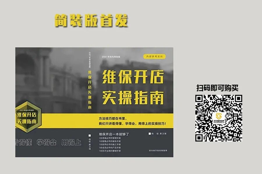 《维保开店实操指南》收集了诸多后市场知名的案例,由黄卫强和杨俊两位老师合作撰写,汽车服务世界联合首发,进一步了解请长按上图二维码。