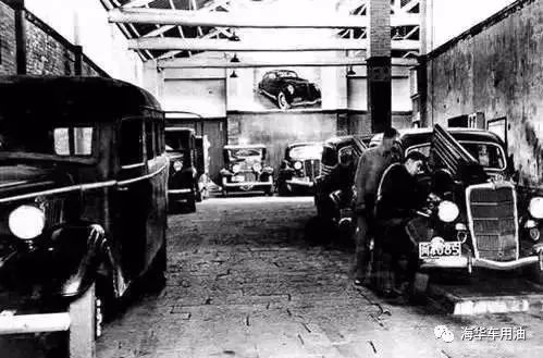 从上图的老照片中可以看到,在宽敞的修理厂房内停着十来辆待修的豪车,依稀还可辨认出停放着福特、别克、林肯、凯迪拉克、奔驰等全球知名品牌。