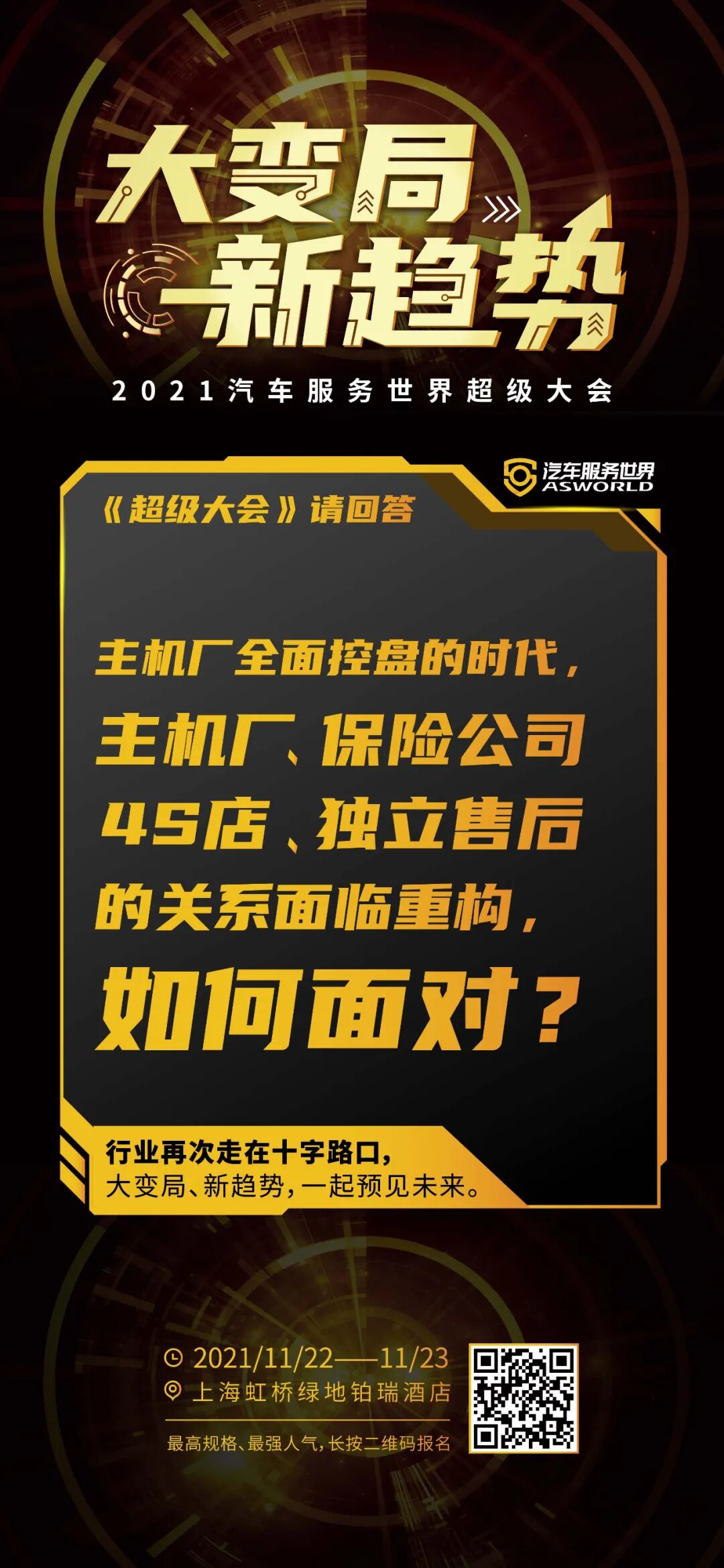 随着汽车电动化、智能化,主机厂正迎来全面控盘的时代,如何应对?2021超级大会,最高规格、最强人气,欢迎您的参与~