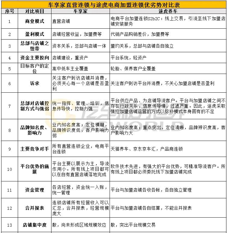 从上面的《车享家直营连锁与途虎店铺加盟连锁优劣势比较》表中,我们可以看出,相对而言,直营连锁比电商加盟连锁有更多的优势和机会。