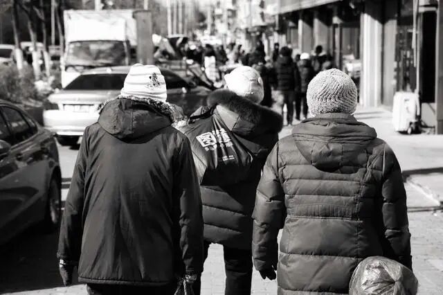 发小奶奶衣着单薄,眼泪还被风刮到了脸上。