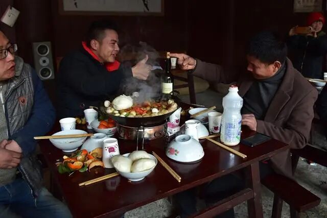 大爷说,吃了!不住了,家里还喂着猪哩!刚才喝了酒,饱饱的!