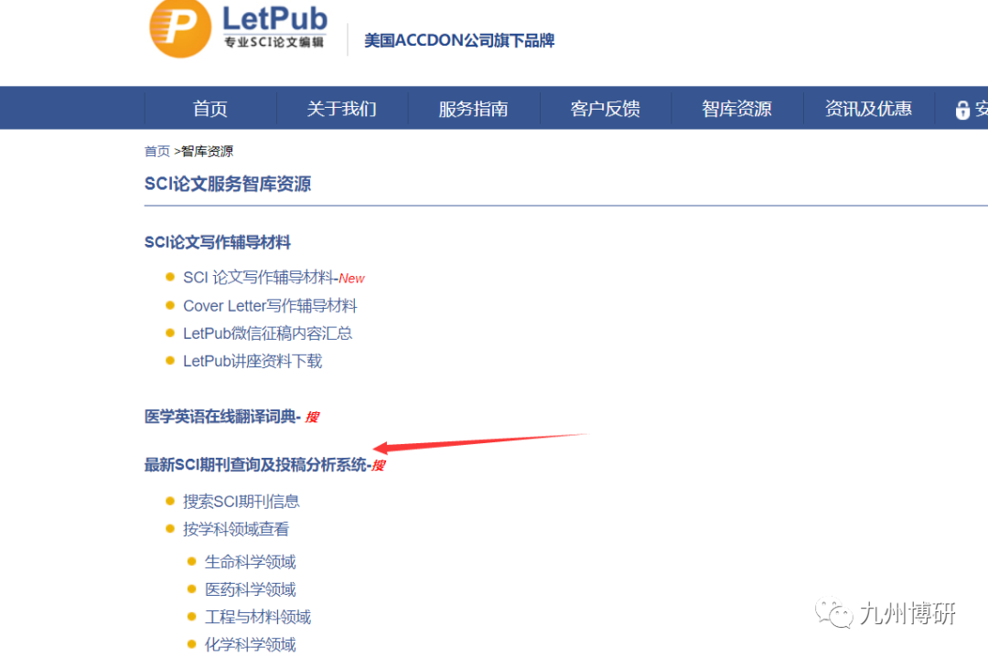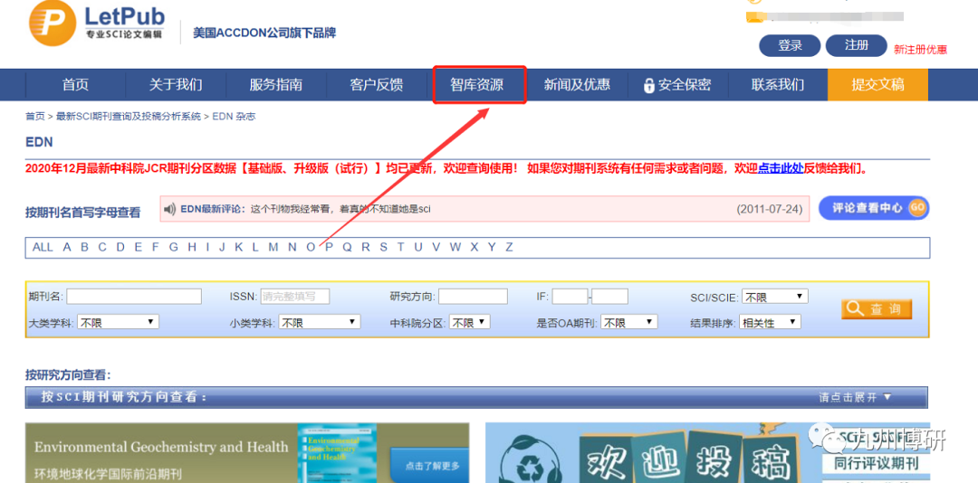 1.打开网址进入letpub的官方网站。点击智库资源一栏。
