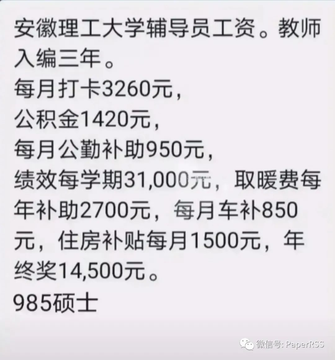 大学辅导员的收入到底如何?网上一位辅导员晒出了自己的收入,这位大学辅导员入编已经三年,每月打卡工资确实不高。如果只看打卡工资,貌似还比不上一般的中学教师。