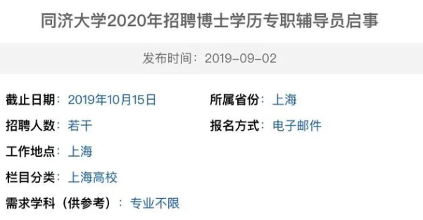 此前,较大程度引发博士学历贬值热议的,还是“同济大学2020年博士学历专职辅导员招聘启事”公布的时候,随着对学历要求的水涨船高,高校辅导员的任职门槛逐年升高且追逐者众多,不少高校的辅导员招聘从本科、硕士学历要求转变为博士学历以上。