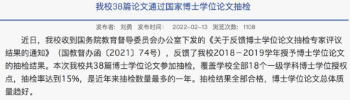 2月13日,中国矿业大学又公布了国家博士学位论文抽检结果:2018-2019学年授予博士学位论文共38篇全部合格。