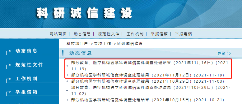 11月19日,科技部网站公开通报了2批共计52起科研诚信调查结果(分别为国家卫健委11.12及11.19日公开通报案例),值得一提的是,19日通报的28个案例中,山东占了21个!主要涉及问题包括论文代写代投、伪造数据等。给予撤销2人博士学位,取消多人博士学位申请资格及复试资格,撤销副主任医师资格、终身禁止参加研究生招生资格审查等处罚。