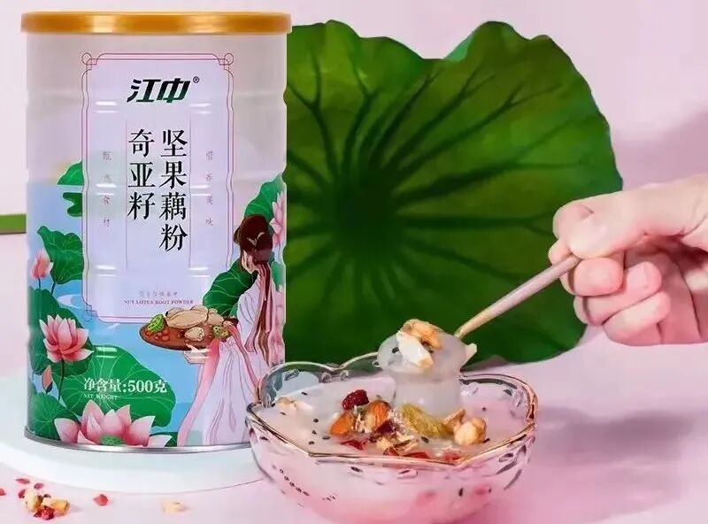 江中牌坚果藕粉,比燕窝还要滋润,每天喝肚子都小了~