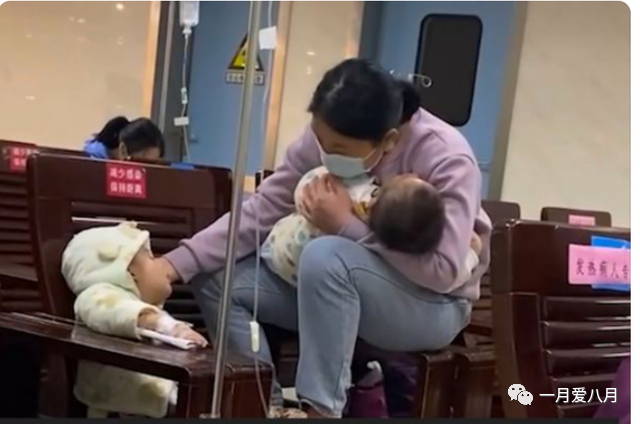 她要照顾两个生病的孩子,孩子哭起来,她不知道先哄谁;