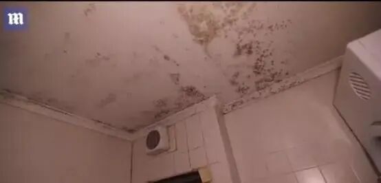 杂物和食物随处堆放,屋顶有霉斑...