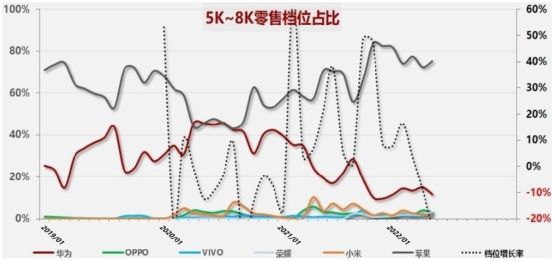 这可能是因为在华为退出 5G 智能手机市场后,苹果目前几乎霸占了整个中国高端智能手机市场。