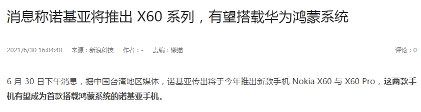 比如曾经有媒体传言诺基亚X60试图搭载鸿蒙系统强势回归市场,结果诺基亚回应会坚定不移提供最佳的安卓体验。华为也否认了诺基亚搭载鸿蒙系统消息不实。