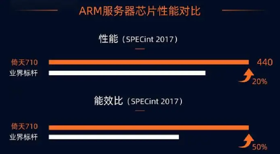 据称,在SPECInt2017平台的跑分达到440分,超出业界标杆20%,能效比优于业界标杆50%,只是没有明说标杆是谁,大家不妨猜测一下。