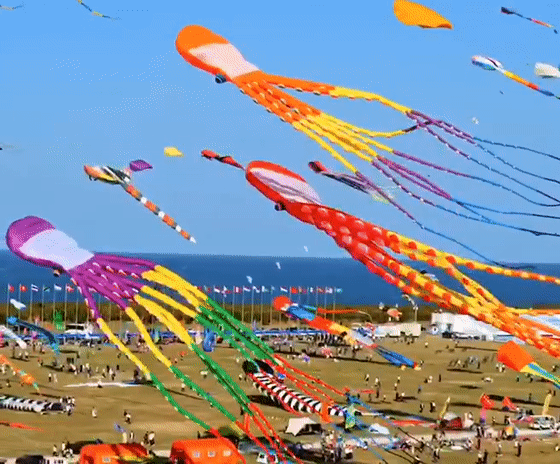 为了把几十米长的风筝拉上天空,挖掘机都得用上,有机会我一定要去看一次。