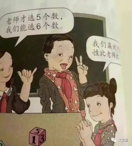 在事件发酵的同时,也有不少80/90后的人翻阅了他们当时的教材插画。作为80后的文史君,甚至还能回想起那时候教材的一些画面来。