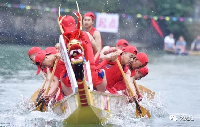 赛龙舟,也是端午节的重要环节。“竞渡”,其实就是龙舟赛的前身。唐朝时期,爱玩的唐人还创造出了“锦标”的比赛制度,在龙舟划到终点的时候,以抢夺浮标来判断胜负,抢得头标的人就是比赛的冠军,为节日平添了更多氛围。