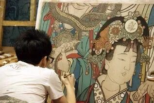 等到全部完成之后,再以同样的锯法,把牢固地附在墙上的壁画分出来,使之与墙面分离,然后全部划上记号,放入垫满了厚棉胎的木箱中。