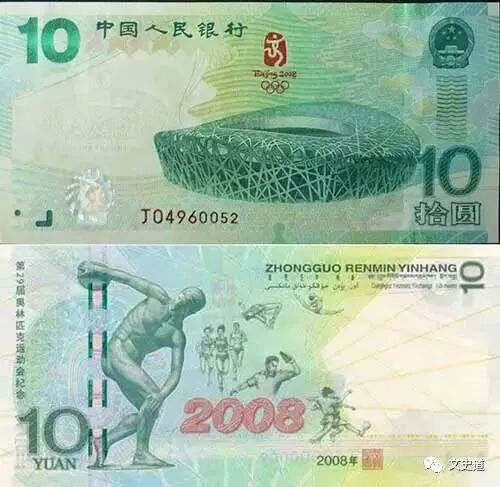 还有2008年我国举办第29届奥林匹克运动会的时候,也发行了相应的纪念钞。当时的面额拾元。主色调为蓝绿色,共发行了600万张。虽然纪念钞与现行流通人民币具有相同职能,与同面额人民币等值流通,但是他的收藏价值更高,所以一般没人会进行交易消费。
