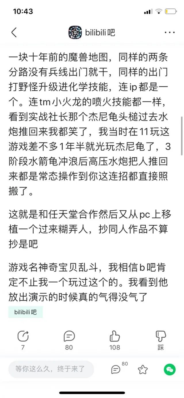 抛开网络上,玩家们对《宝可梦:大集结》的各种口诛笔伐,在现实中,我周围人对《宝可梦:大集结》的态度,也大多是否定大于肯定。例如编辑部的卜鲁SHI老师,就是一名资深宝可梦粉丝。