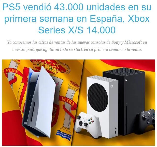 在过往的历史中,相似的情景一再上演。PS4在西班牙的首周销量为3.8万台,同时代的Xbox One为1.5万台。再往前一个世代的PS3,首周销量为3.5万台,同时代的Xbox 360为1.49万台。